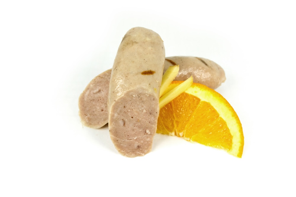 Pork, water, rice flour, rice starch, orange zest, salt, orange oil, spices, garlic powder, sodium phosphate, sodium ascorbate.