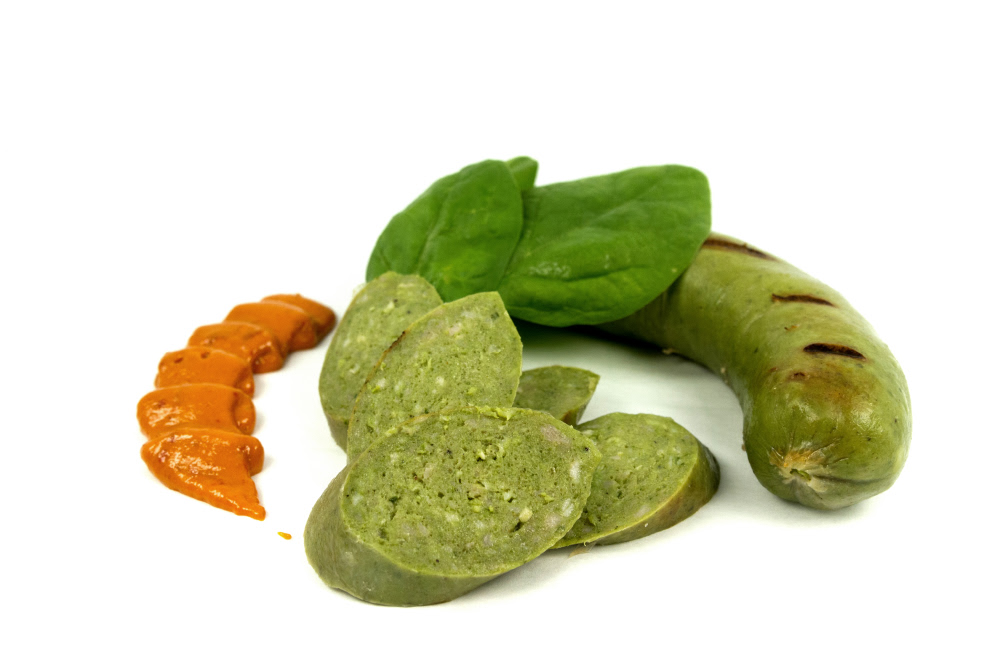Saucisse de porc regorgeant d’épinards frais et de poivre.