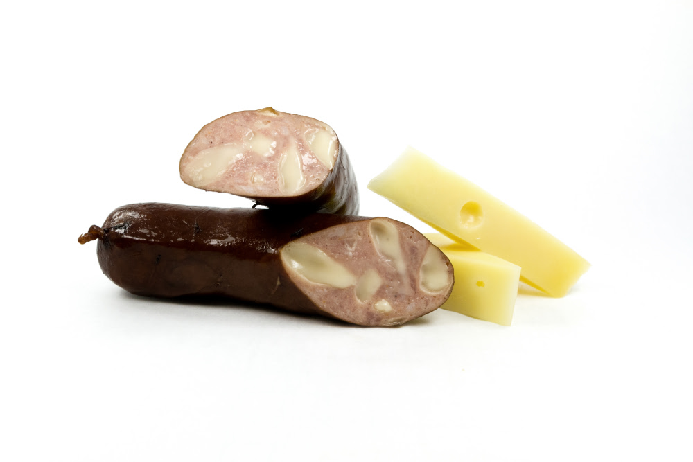 L’originale que personne n’arrive à imiter. Porc, veau et boeuf, farci de vrai fromage suisse et d’un soupçon d’ail.